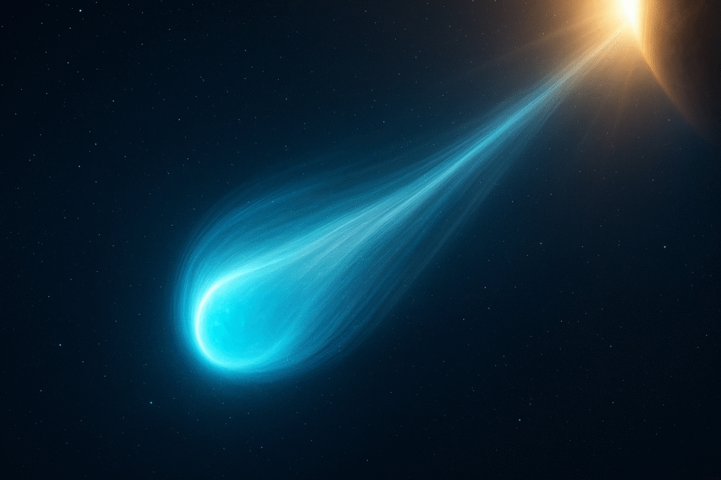 Às vezes, é o visitante que nos revela a casa: um forasteiro de gelo e poeira apontando, silencioso, para como nascem os mundos.